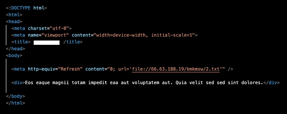 Los mensajes de correo electrónico incluyen archivos ZIP personalizados (uno por víctima) que contienen archivos HTML con etiquetas HTML META refresh.